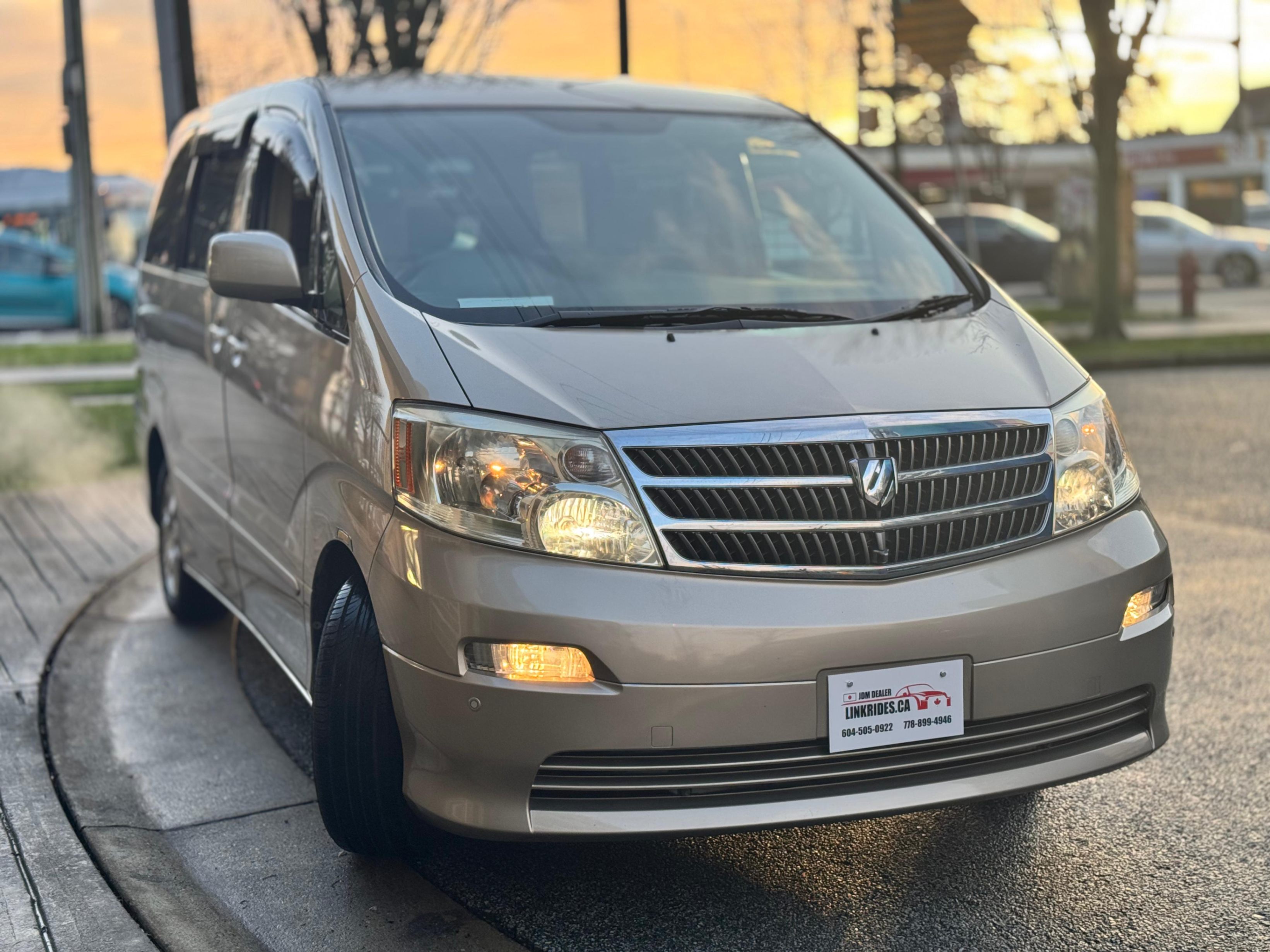 2003 Toyota Alphard 2.4L 4WD with only 61k km all documents provided to verify its low kilometers. This is the more fuel-efficient version of the Alphard compared to the 3L model, making it great for daily commuting yet the perfect amount of all wheel drive power to get through your daily needs year-round. Fully safety inspected and registered for use in BC, no extra steps just need insurance. In amazing condition, with a plethora of features, grab this super clean Alphard before it’s gone, call or message us to schedule an appointment to view this and many more amazing minivans.