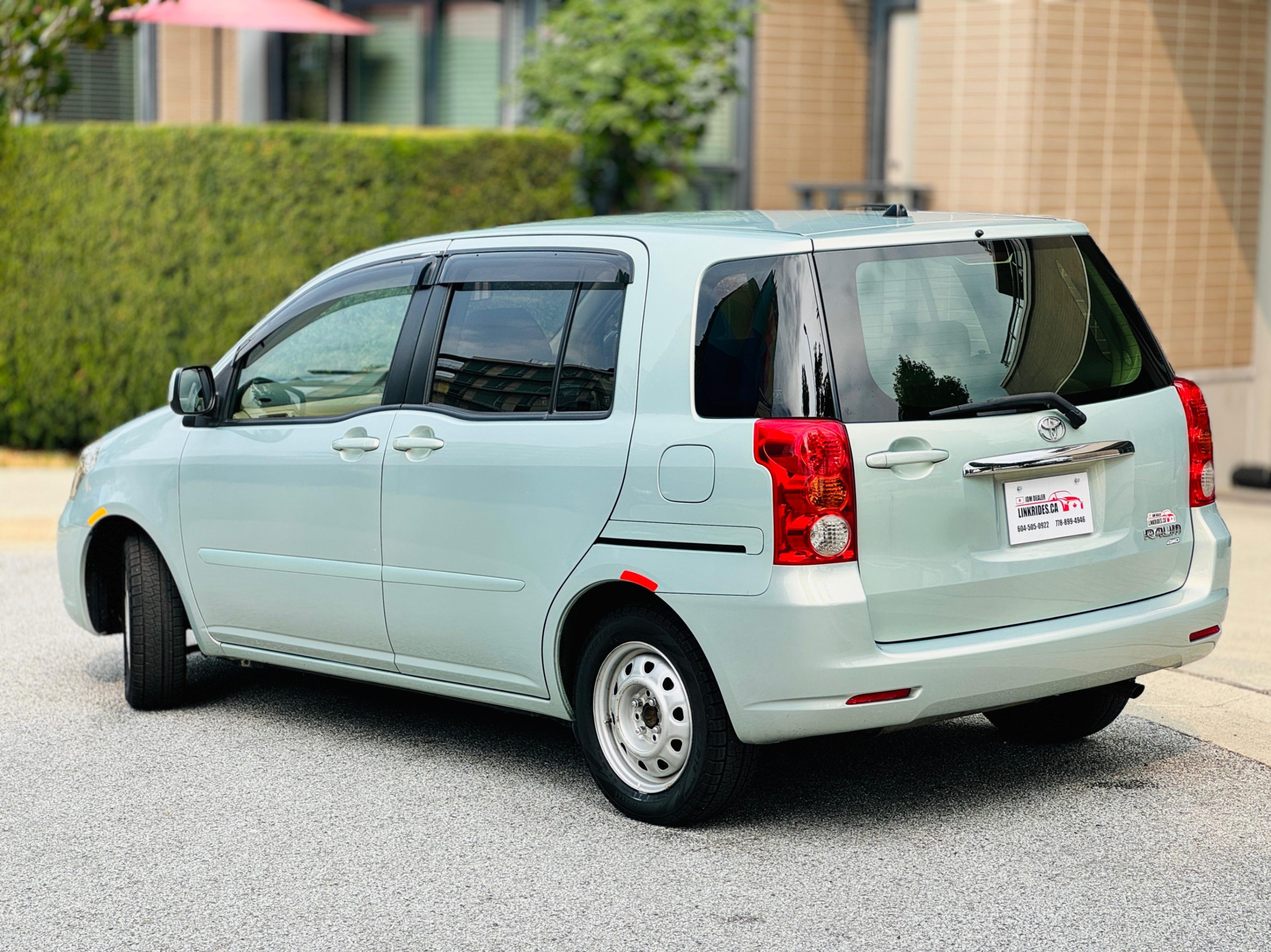 2004 Toyota Raum mini MPV (multi-purpose vehicle) that has a 1.5L fuel-efficient engine and all-wheel drive powertrain. The name comes from a German word meaning Room, which reflects the vast amount of interior space relative to its size. What's special about this vehicle is that it does not have a doorjamb in between the front and rear doors on the passenger side, making it super spacious and easy to load and unload passengers. It also has sliding rear doors making it super easy to get in and out of the car in tight parking spaces, lol what other car has sliding doors? The Van itself has hardly been used as it only has 59k km (all documentation provided to verify this) so it has plenty of life left. This is a right-hand drive and is fully inspected and registered for use in BC. Super smooth and drives like a beauty, it has plenty of power for its size and is convenient in the snow as it's all-wheel drive. Super Clean Interior and Exterior. Come take it for a spin we have a variety of other options as well!