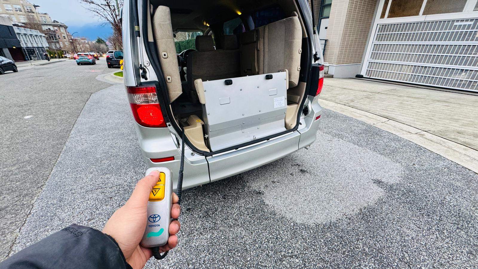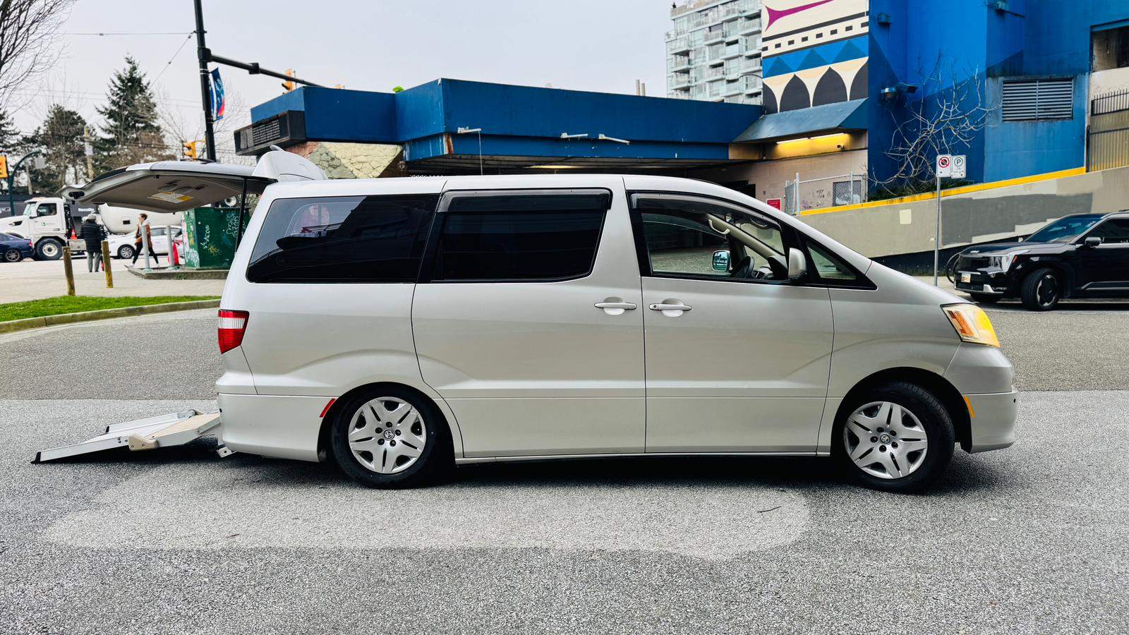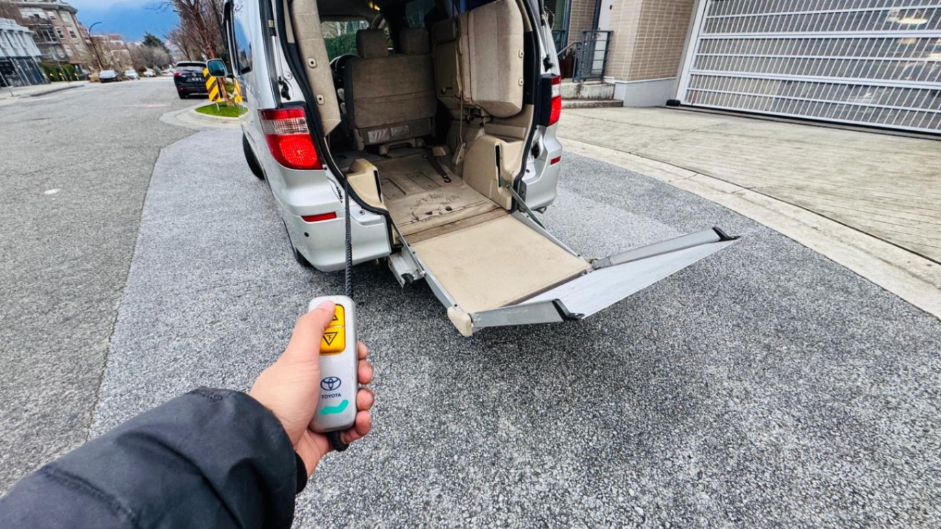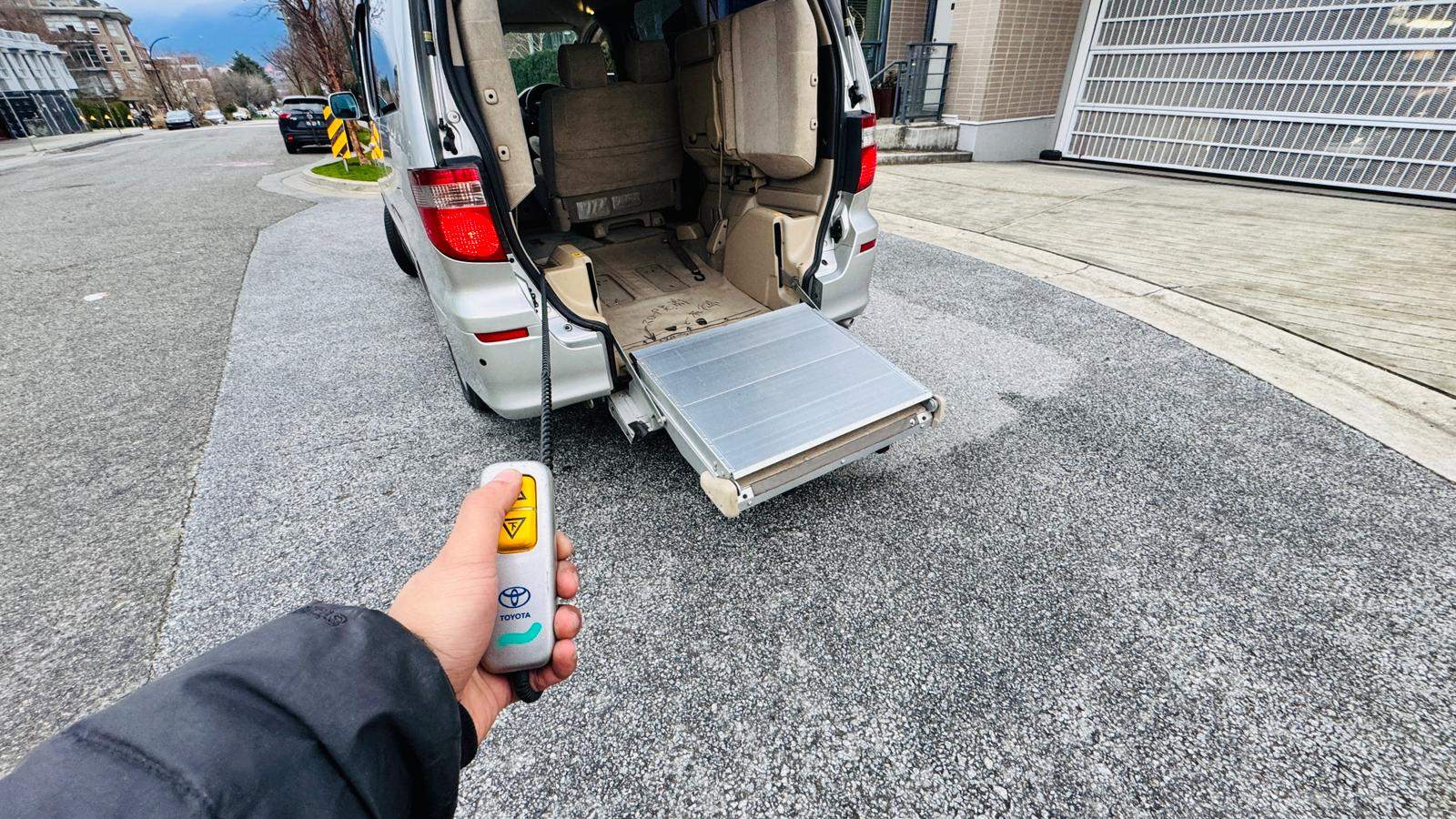 2004 Toyota Alphard 3L V6 Wheelchair accessible vehicle with only 106k km! Loading and unloading the wheelchair can be done with the push of a button. If you are not transporting a wheelchair, it can be used as a normal minivan with up to 7 people including the driver. It is spacious, suitable for a family. The timing belt has already been changed on this vehicle, so it’s ready to go! This right-hand drive vehicle imported from Japan. It has been fully inspected and registered for use in British Columbia. no extra steps just need insurance to get on the road. Come take it for a spin