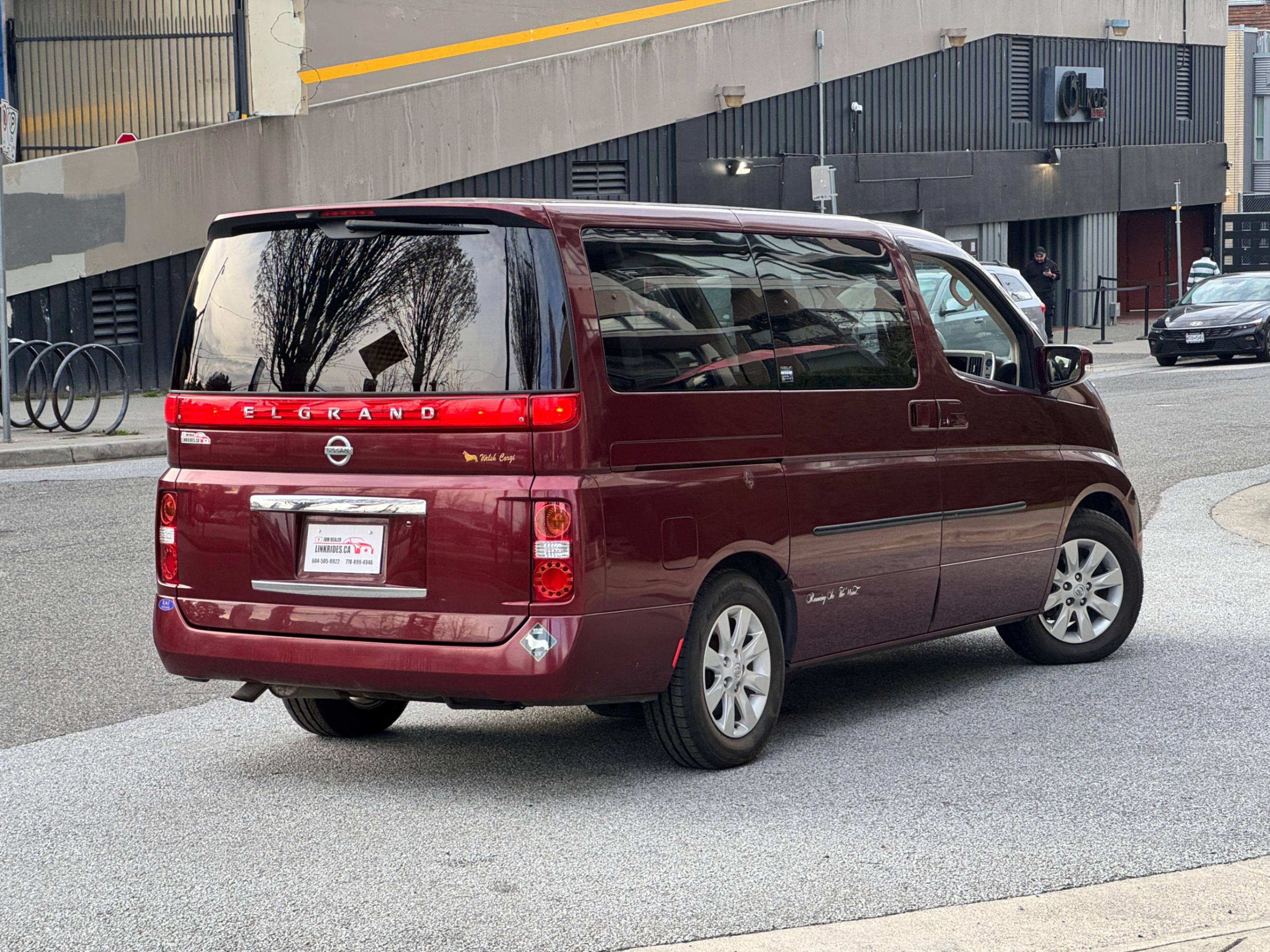 2005 Nissan Elgrand 3.5L V6 4WD has only 20,000 km! This eight-seater features the more powerful 3.5L engine compared to the 2.5L models. With versatile seating arrangements and options for expanding cargo space, it provides plenty of room and makes an excellent family vehicle. It's right-hand drive, fully inspected, and registered for use in B.C.—all that's left is to insure it. The interior and exterior are both clean. Call or message us to schedule an appointment to take it for a test drive and secure yours before it's gone!