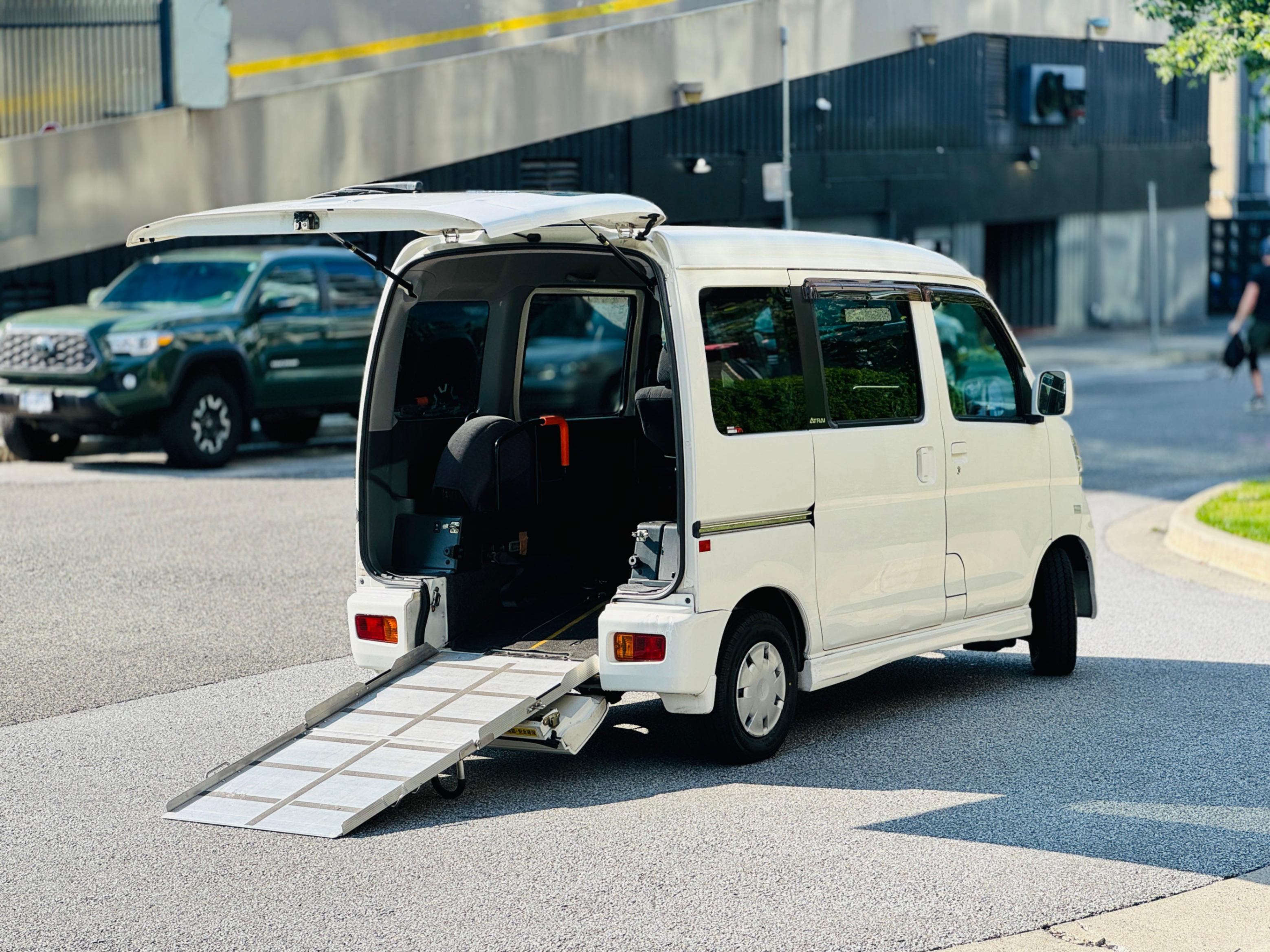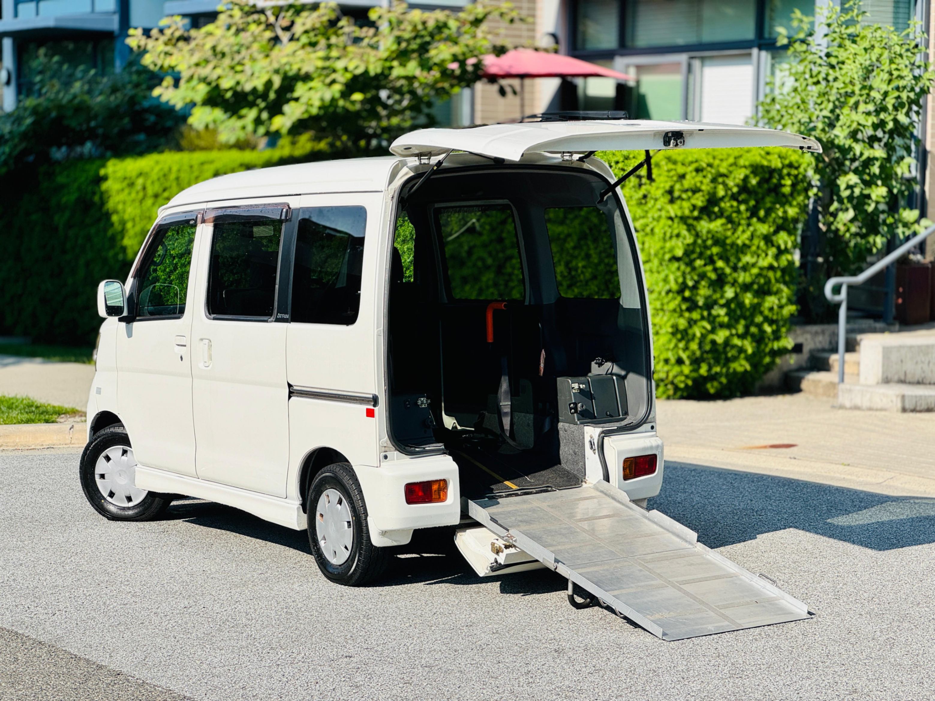 2006 Daihatsu Atrai 660cc wheelchair-accessible vehicle with 64,150 km. The 660cc engine offers fuel efficiency and sufficient power for daily errands. The manual drop-down ramp is lightweight and designed for ease of operation. It includes a power winch system to pull the wheelchair into the vehicle securely, preventing it from rolling back while loading. This a right-hand drive and is imported from Japan. This vehicle has passed all inspections and is registered for use in BC, just needs insurance no extra steps.