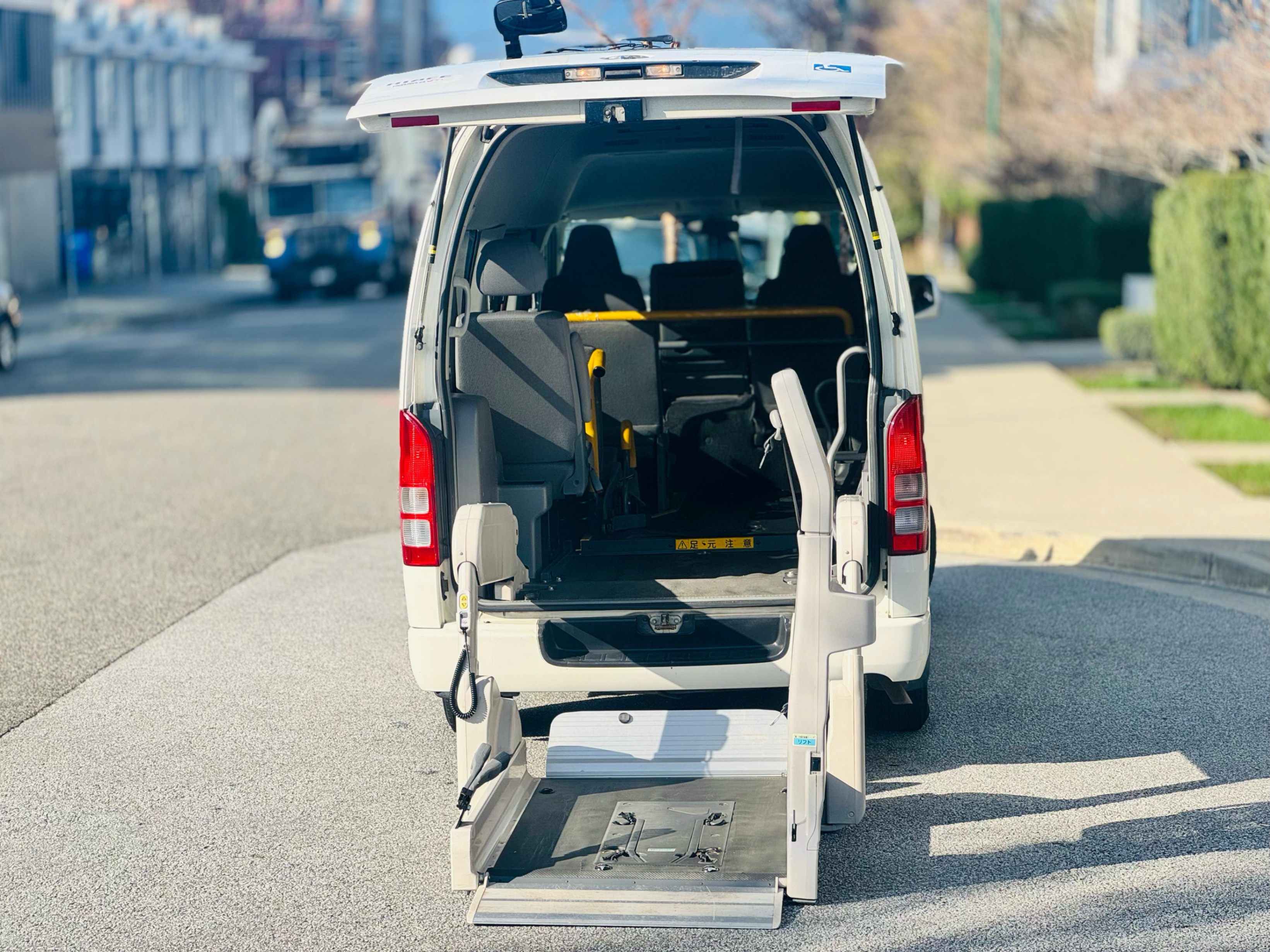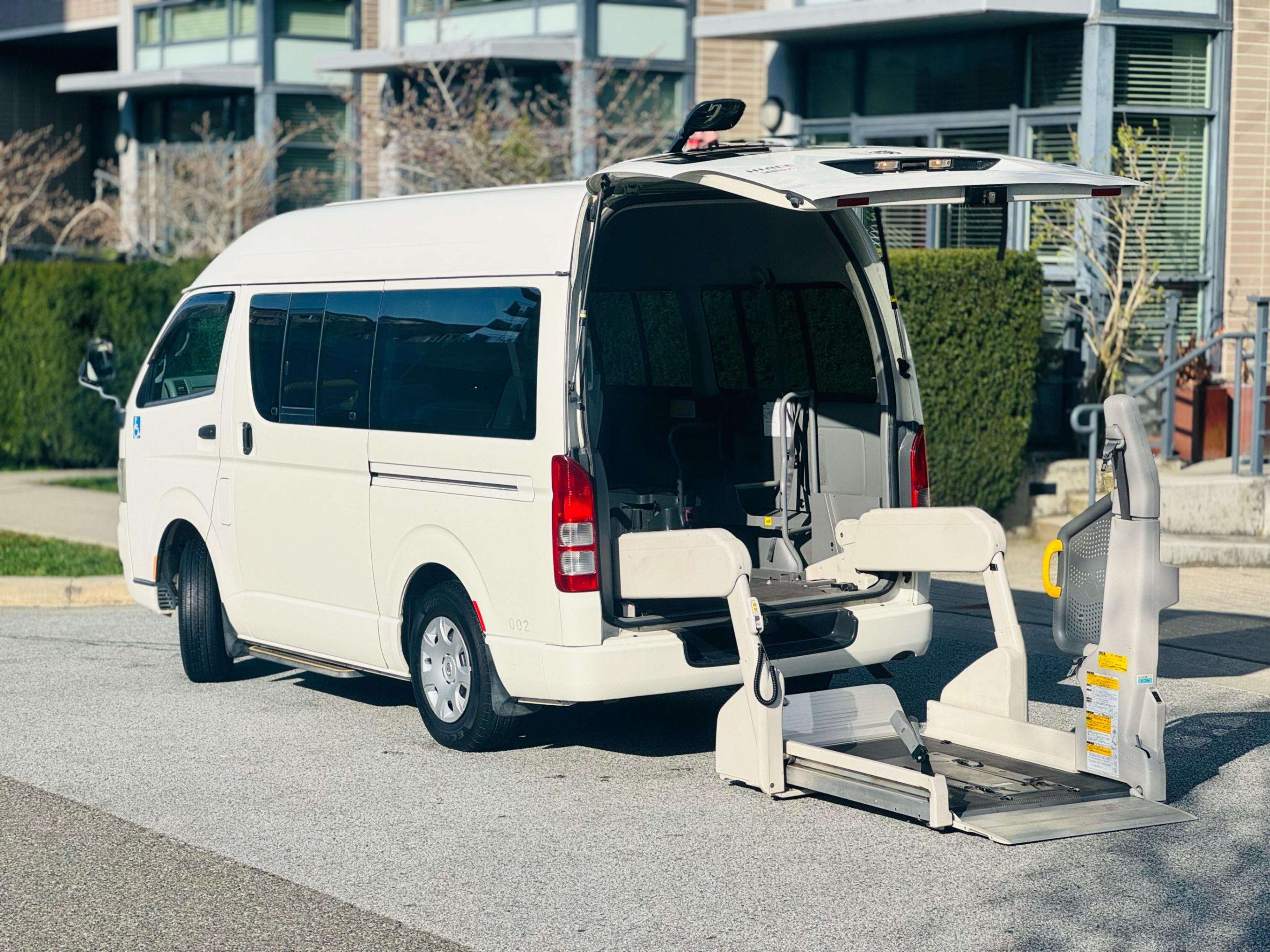 2006 Toyota Hiace High Roof 2L gasoline Wheelchair Van with only 99k km! Loading and unloading can be done with the push of a button. The lift mechanism is powered by a powerful hydraulic system with up to 250kg load capacity. This van can also be great for a camper build, the wheelchair ramp and seats can be removed to build your dream camper. This is a right-hand drive imported from Japan. Schedule an appointment to view this and many other wheelchair vans, multiple sizes and price ranges available.