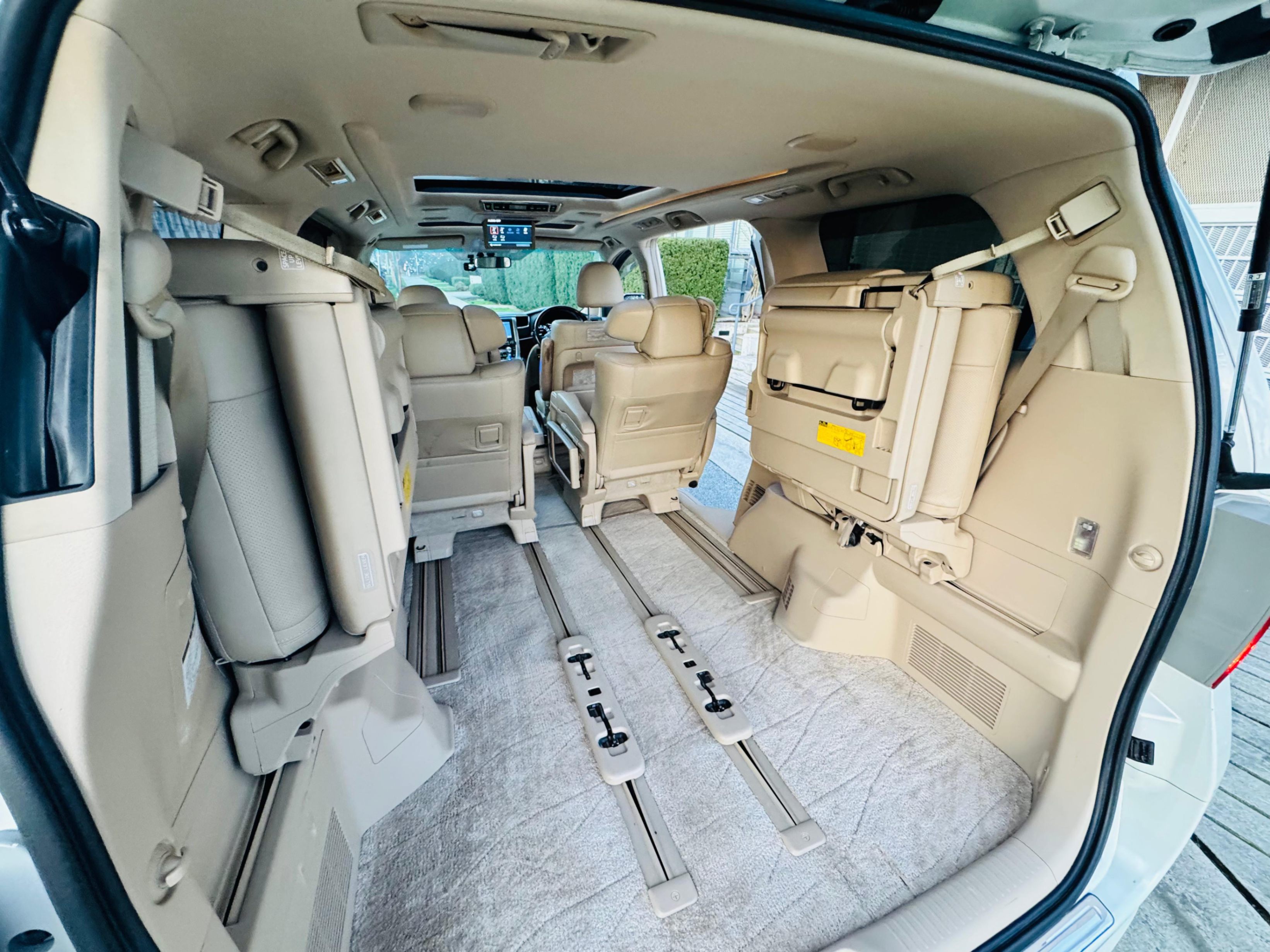2008 Toyota Alphard 3.5L V6 4WD fully loaded leather package. This 2nd gen Alphard comes equipped with all the features you could ever want in a minivan including all the power you could ever need for any adventure you throw at it. It has a sleek leather interior with heated seats, so you’ll never freeze your buns off. Reclining seats provide max comfort and it’s perfect for stargazing out your sunroof/moonroof. Powered doors all around means getting the whole gang and their gear in is super simple at the touch of a button. Fully safety inspected and registered for use in BC, no extra steps just need insurance. Grab this fully loaded Alphard before it’s gone, call or message us to schedule an appointment to view this and many more amazing minivans.